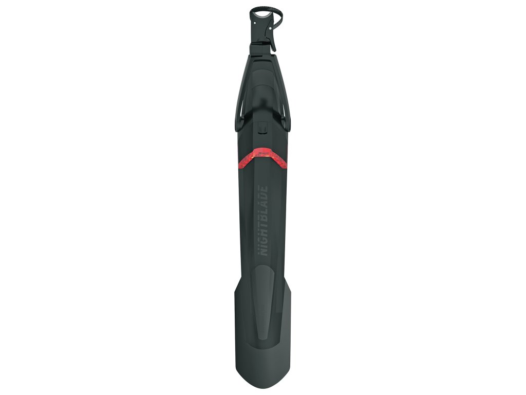 Blatník Nightblade ponúka integrované riešenie pre horské bicykle. Poskytuje nielen optimálnu ochranu proti striekajúcej vode, ale taktiež zaisťuje vyššiu bezpečnosť v cestnej premávke vďaka integrovanému zadnému svetlu.Zadné svetlo s integrovanou dobíjacou batériou je možné vybrať a nabiť pomocou pripojenia USB.Jednoduchý upínací systém umožňuje montáž blatníka na takmer všetky druhy sedloviek. Vďaka dvom kĺbom je možné blatník optimálne prispôsobiť na akýkoľvek bicykel.Vhodný pre kolesá 29, 27,5+Max. šírka plášťa 3,0"Šírka plášťa: 52 - 75 mmDĺžka blatníka 620 mm