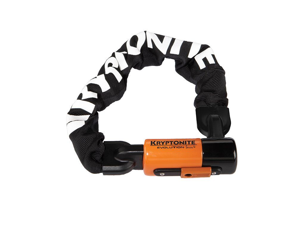 Odolný reťazový zámok Kryptonite Evolution 1055 (10 mm x 55 cm) s patentovaným ukončením reťaze, ochranou proti vŕtaniu a bezpečnostnou úrovňou 8/10.