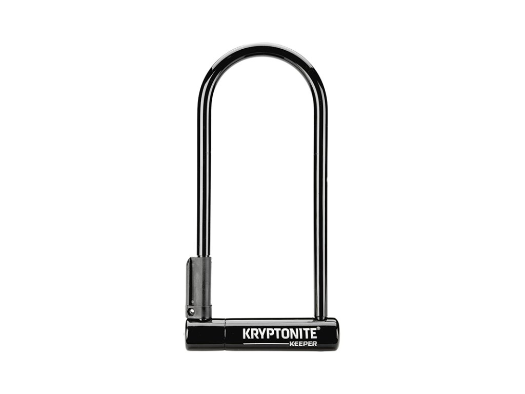 Zámok Kryptonite Keeper 12 Long s predĺženou dĺžkou, 12 mm oceľovou podkovou, mechanizmom DEADBOLT, dvoma kľúčmi a držiakom na rám. Úroveň ochrany 5/10.